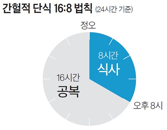 | 16:8 방식 | 하루 24시간 중 16시간은 공복, 8시간 안에 식사 (가장 대중적) |